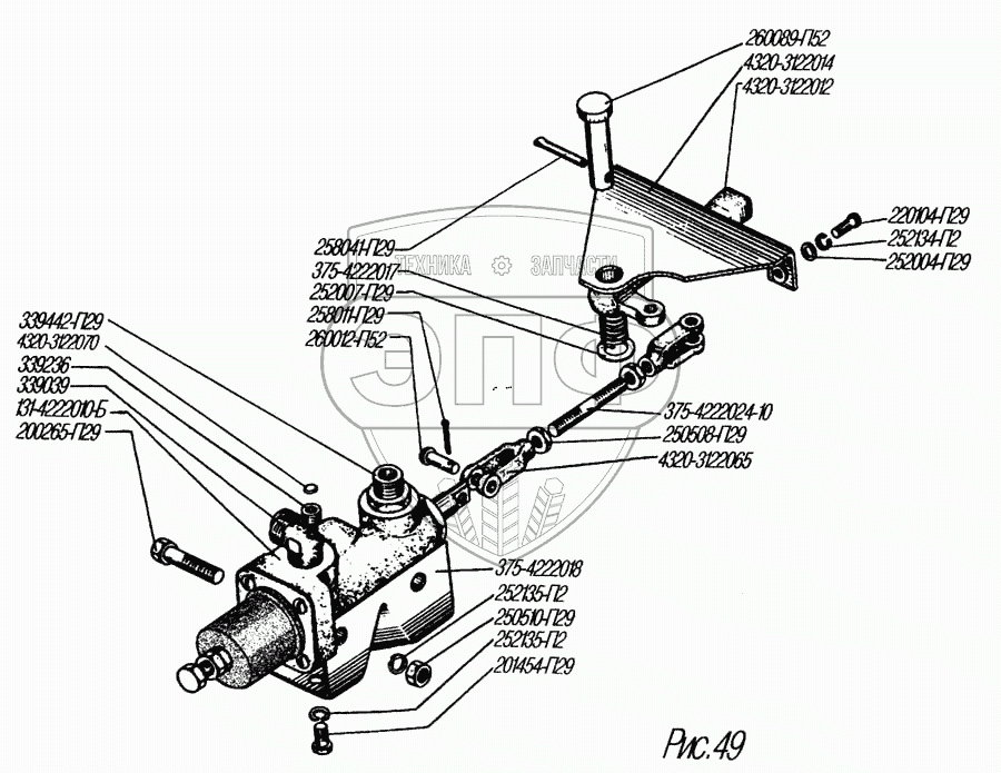 Каталог запасных частей к технике: УралАЗ УРАЛ-4320-31. Установка крана управления давлением