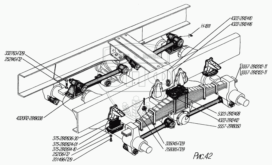 Каталог запасных частей к технике: УралАЗ УРАЛ-4320-31. Задняя балансирная подвеска