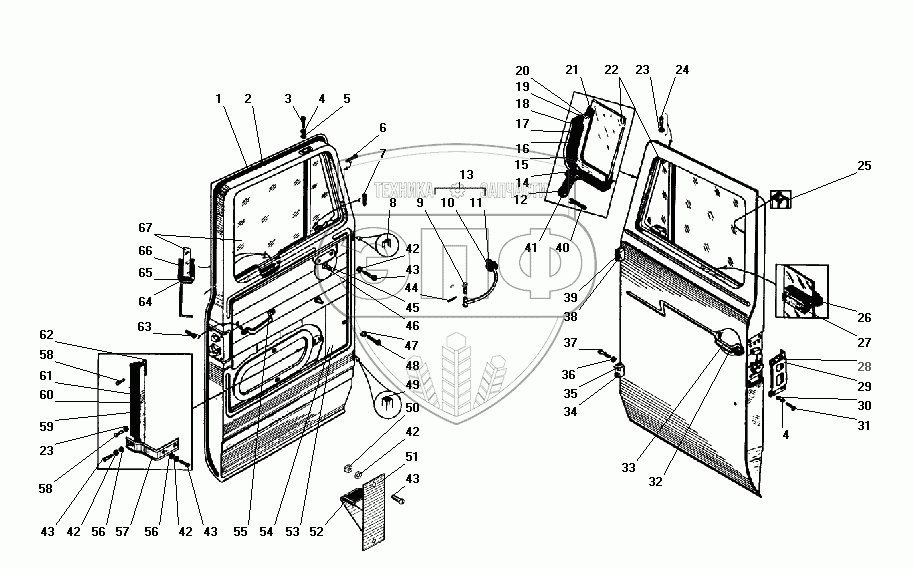 Каталог запасных частей к технике: УралАЗ УРАЛ-4320-31. Двери кабины