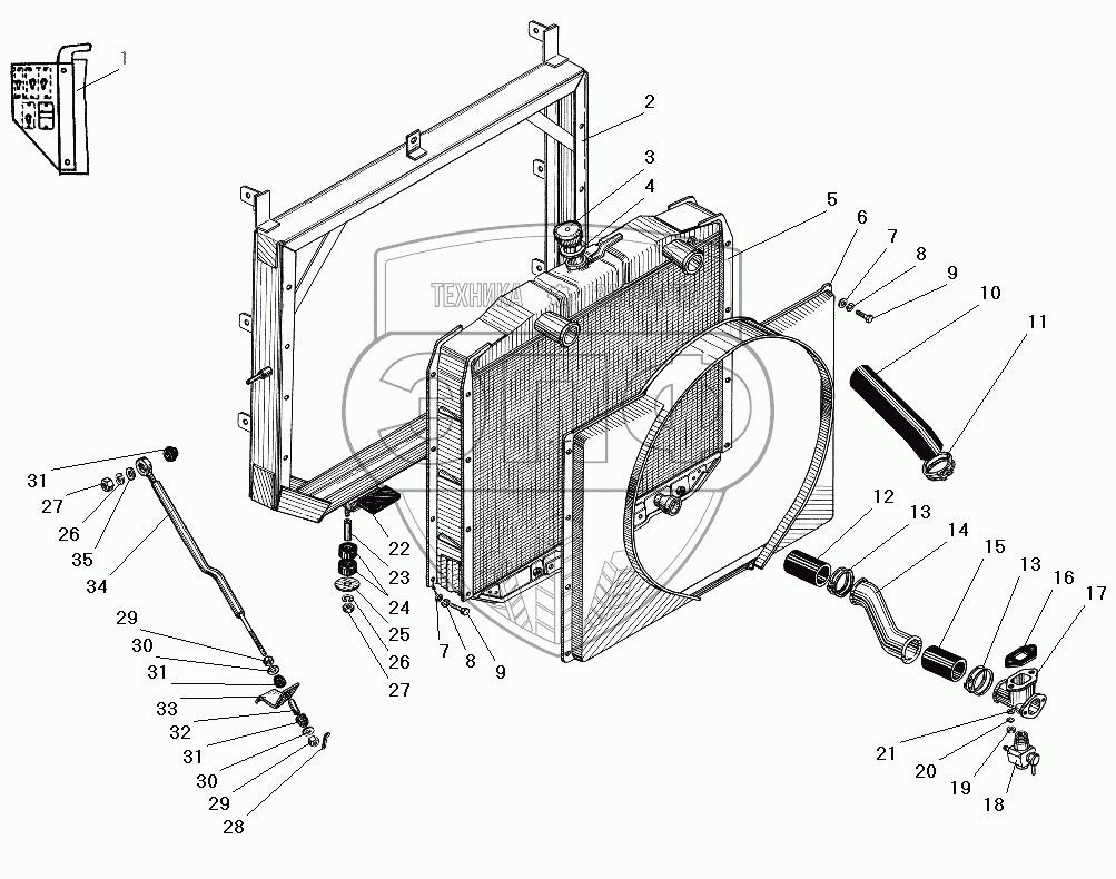 Каталог запасных частей к технике: УралАЗ УРАЛ-4320-31. Радиатор системы охлаждения