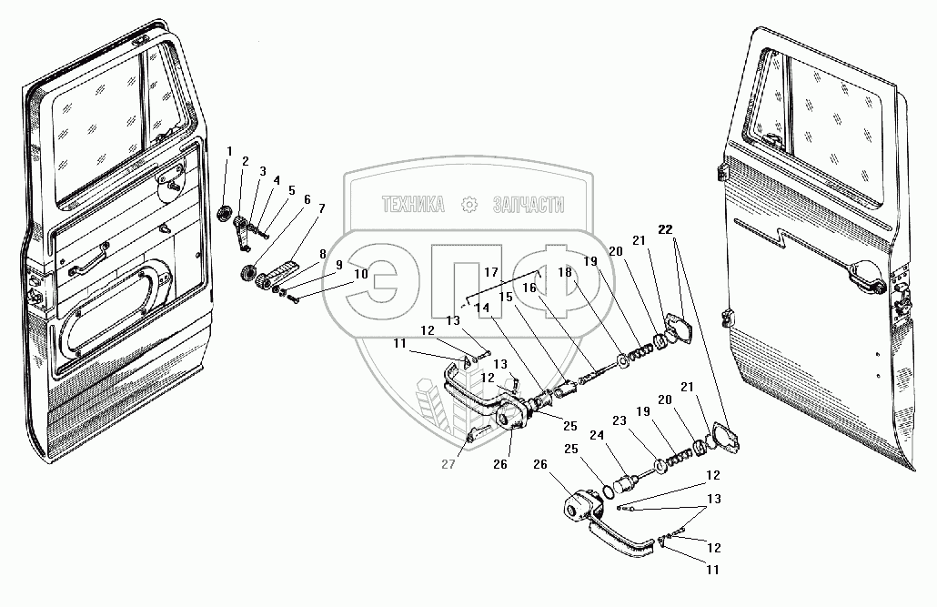Каталог запасных частей к технике: УралАЗ УРАЛ-4320-31. Ручки двери
