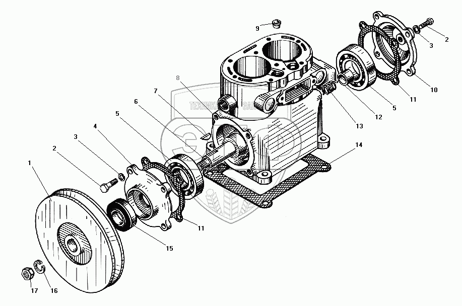 Каталог запасных частей к технике: УралАЗ УРАЛ-4320-41. Блок-картер компрессора