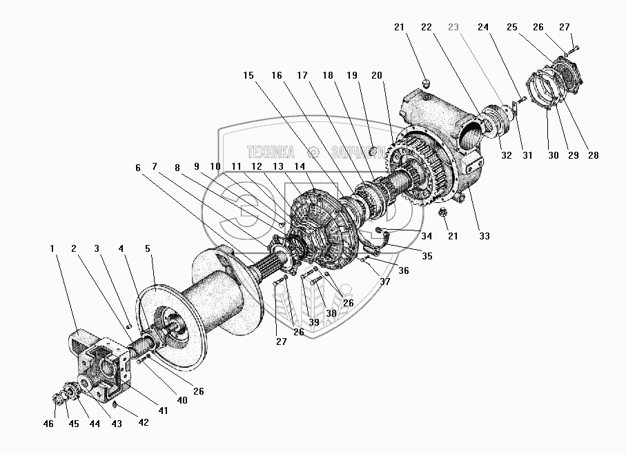 Каталог запасных частей к технике: УралАЗ УРАЛ-4320-41. Детали редуктора лебедки