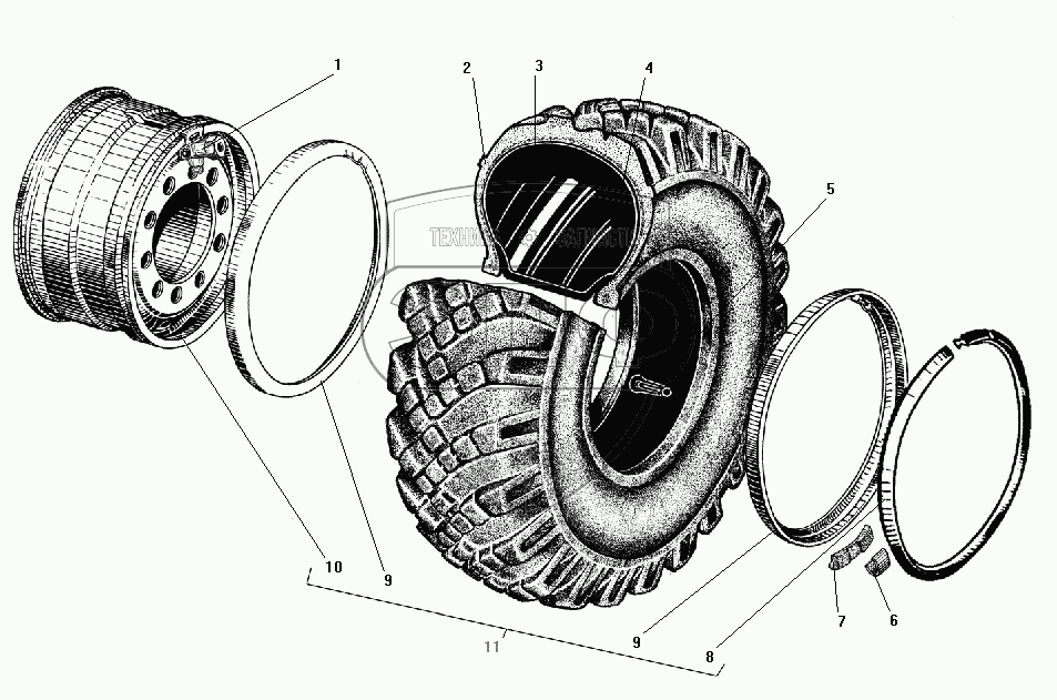 Каталог запасных частей к технике: УралАЗ УРАЛ-4320-41. Колесо и шина