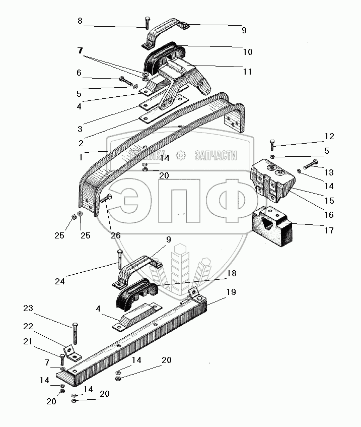 Каталог запасных частей к технике: УралАЗ УРАЛ-4320-41. Подвеска двигателя