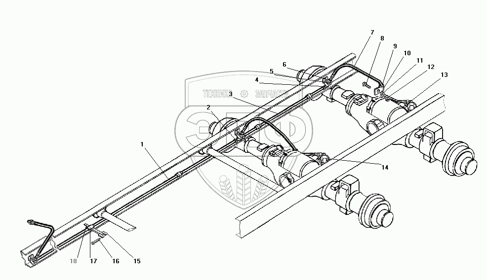 Каталог запасных частей к технике: УралАЗ УРАЛ-4320-41. Привод блокировки межколесных дифференциалов