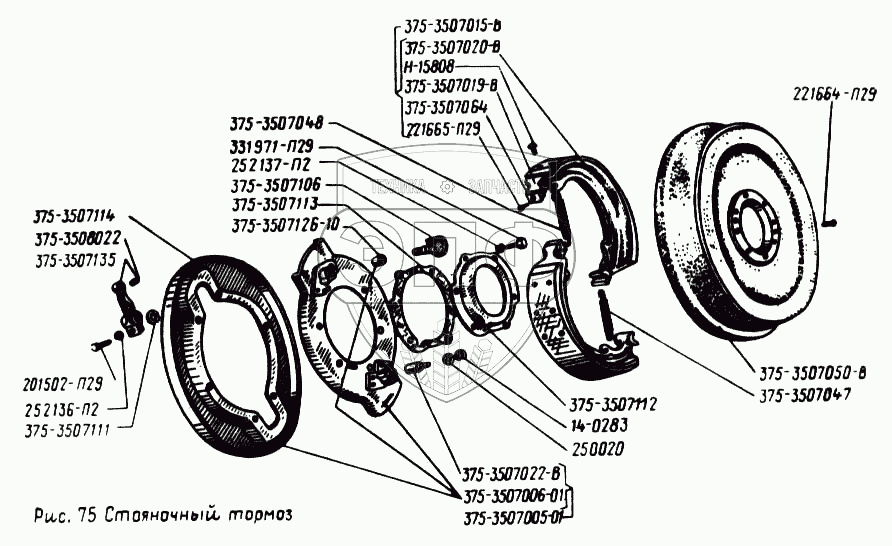 Каталог запасных частей к технике: УралАЗ УРАЛ-4320. Стояночный тормоз