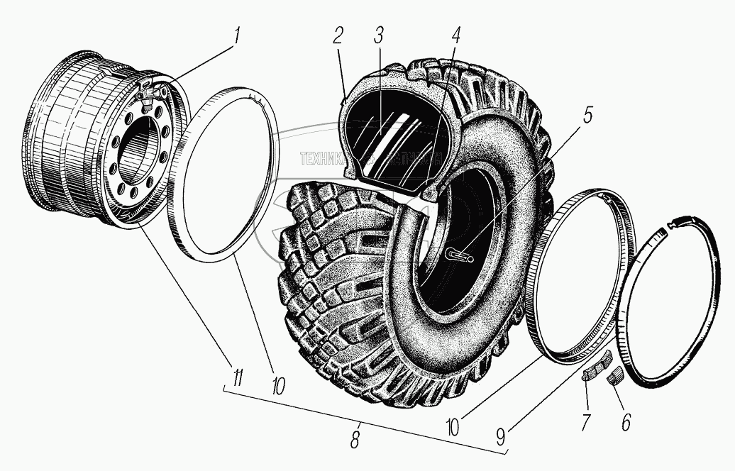 Каталог запасных частей к технике: УралАЗ УРАЛ-4320-60. Колесо и шина