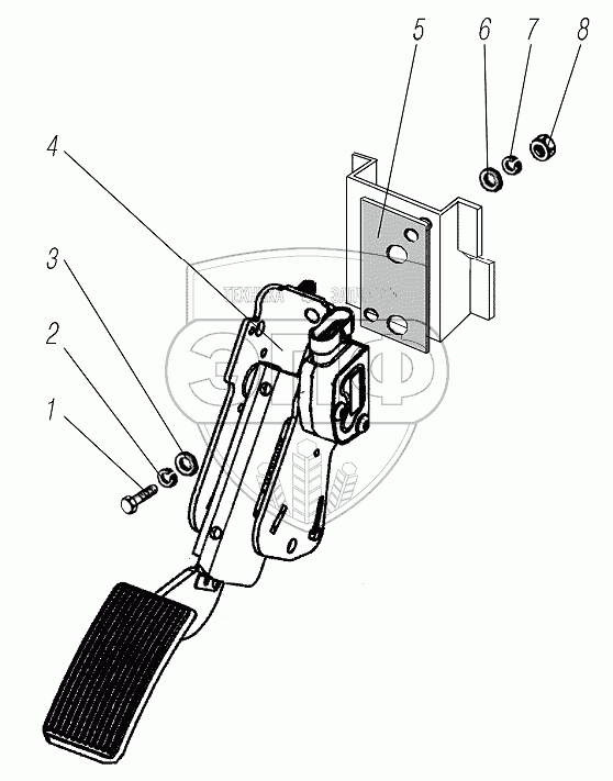 Каталог запасных частей к технике: УралАЗ УРАЛ-4320-60. Установка педали акселератора