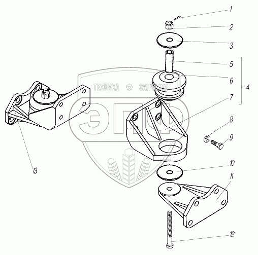 Каталог запасных частей к технике: УралАЗ УРАЛ-4320-6951-74. Подвеска двигателя передняя