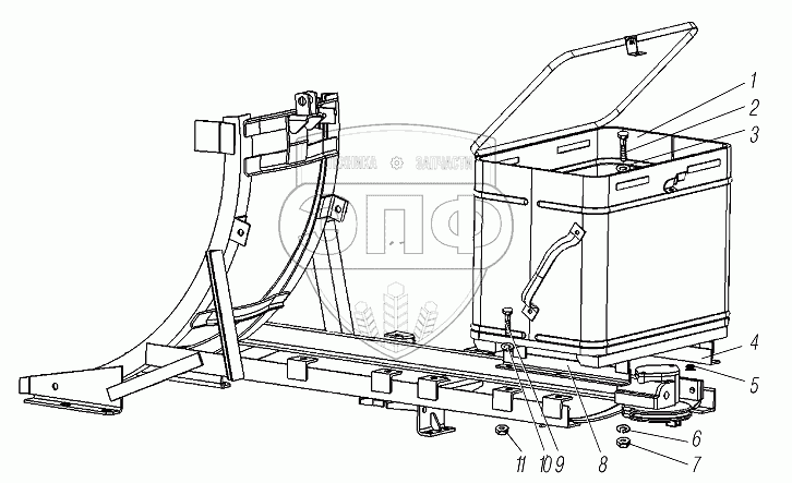 Каталог запасных частей к технике: УралАЗ УРАЛ-4320-6951-74. Установка инструментального ящика
