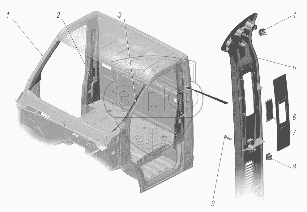 Каталог запасных частей к технике: УралАЗ УРАЛ-4320-6951-74. Установка обивки боковины