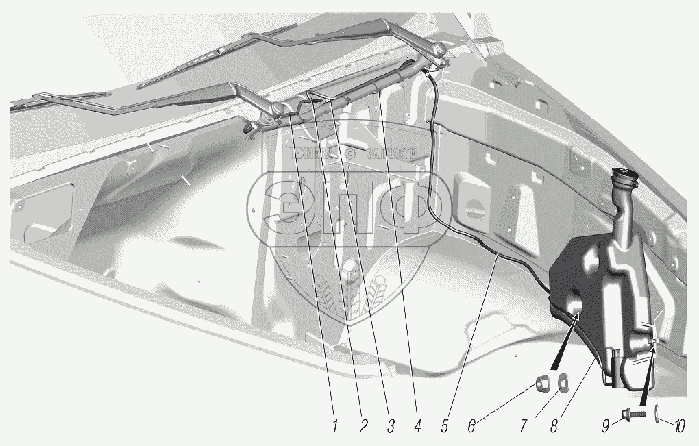 Каталог запасных частей к технике: УралАЗ УРАЛ-4320-6951-74. Установка омывателя