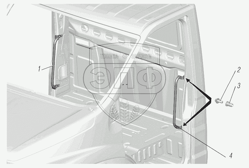 Каталог запасных частей к технике: УралАЗ УРАЛ-4320-6951-74. Установка поручней