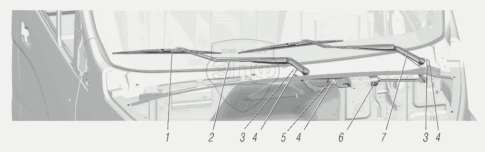 Каталог запасных частей к технике: УралАЗ УРАЛ-4320-6951-74. Установка стеклоочистителя