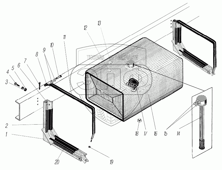 Каталог запасных частей к технике: УралАЗ УРАЛ-4320-6951-74. Установка топливных баков