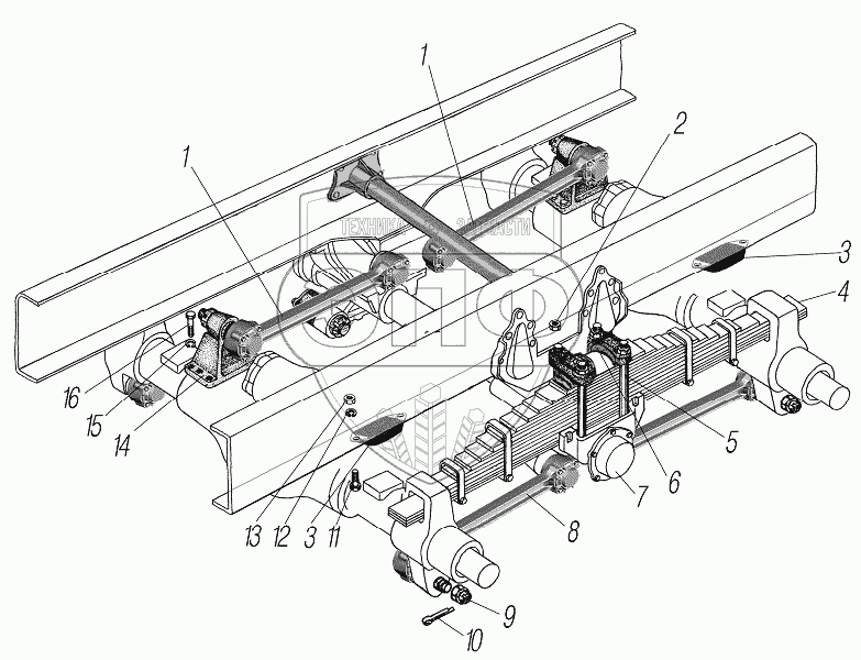 Каталог запасных частей к технике: УралАЗ УРАЛ-4320-80М/82М. Задняя подвеска