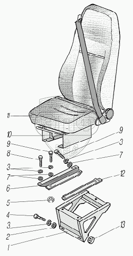 Каталог запасных частей к технике: УралАЗ УРАЛ-44202-3511-80. Сиденье пассажира
