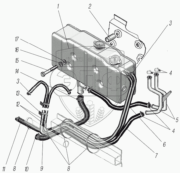 Каталог запасных частей к технике: УралАЗ УРАЛ-44202-3511-80. Установка расширительного бачка
