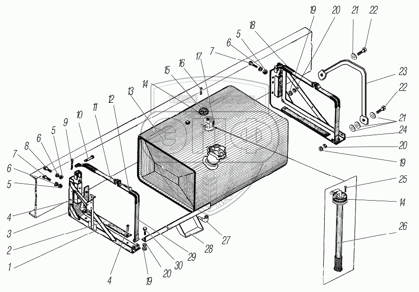 Каталог запасных частей к технике: УралАЗ УРАЛ-44202-3511-80. Основной топливный бак