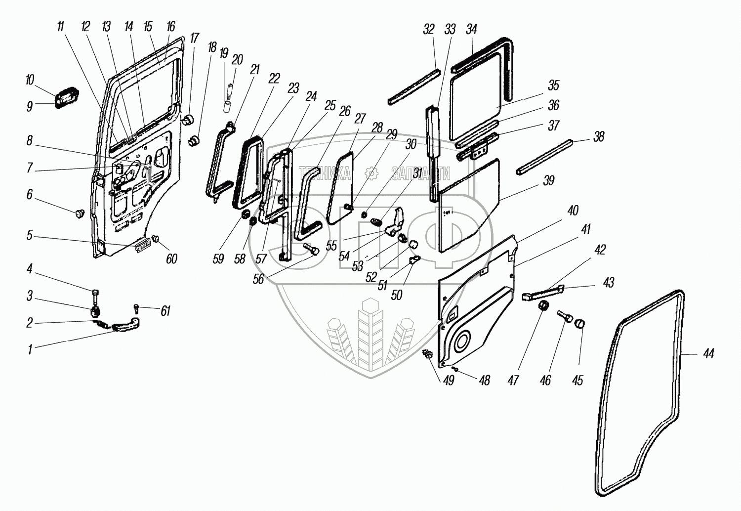 Каталог запасных частей к технике: УралАЗ УРАЛ-44202-3511-80М. Двери кабины
