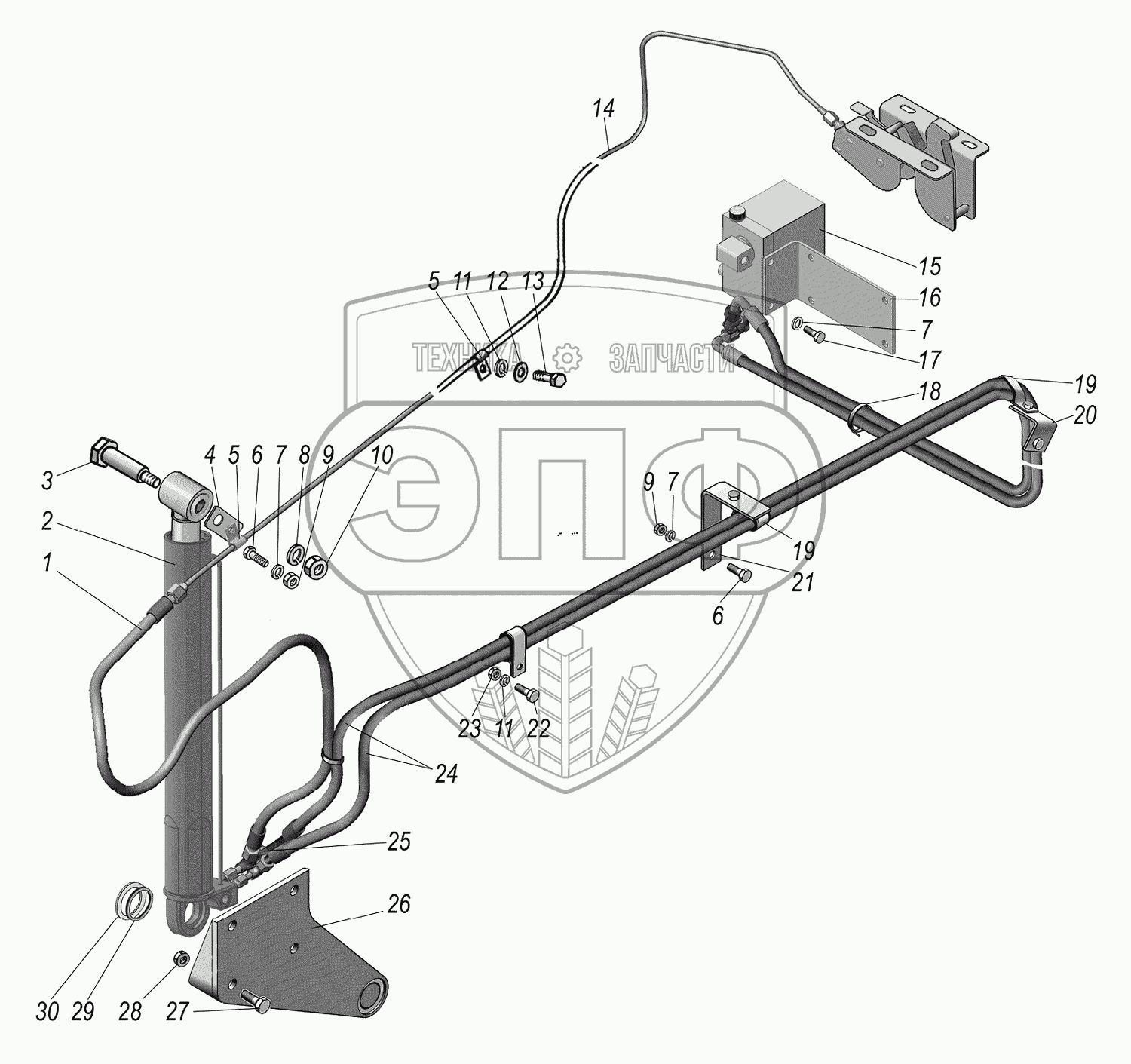 Каталог запасных частей к технике: УралАЗ УРАЛ-44202-3511-80М. Механизм опрокидывания кабины