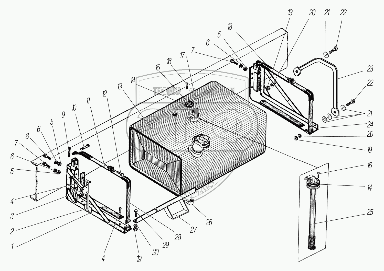 Каталог запасных частей к технике: УралАЗ УРАЛ-44202-3511-80М. Основной топливный бак