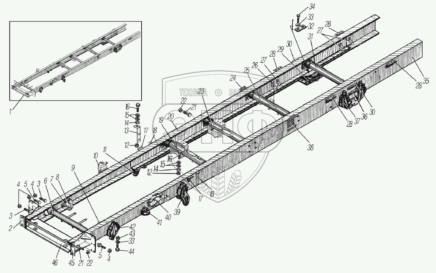 Каталог запасных частей к технике: УралАЗ УРАЛ-44202-3511-80М. Рама