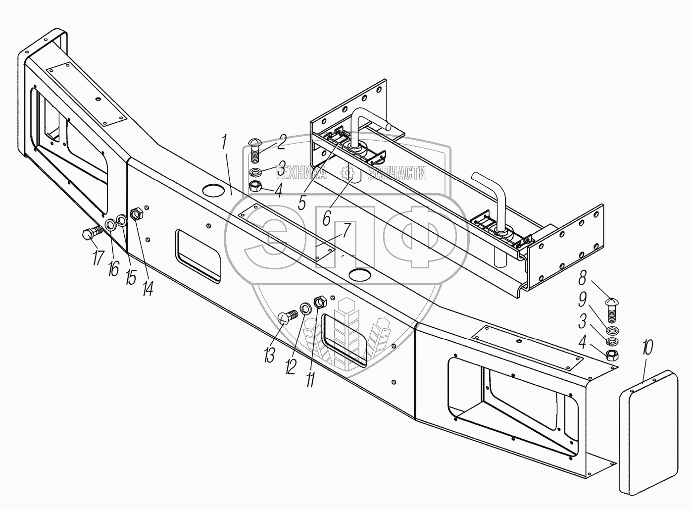 Каталог запасных частей к технике: УралАЗ УРАЛ-44202-3511-80М. Установка переднего буфера