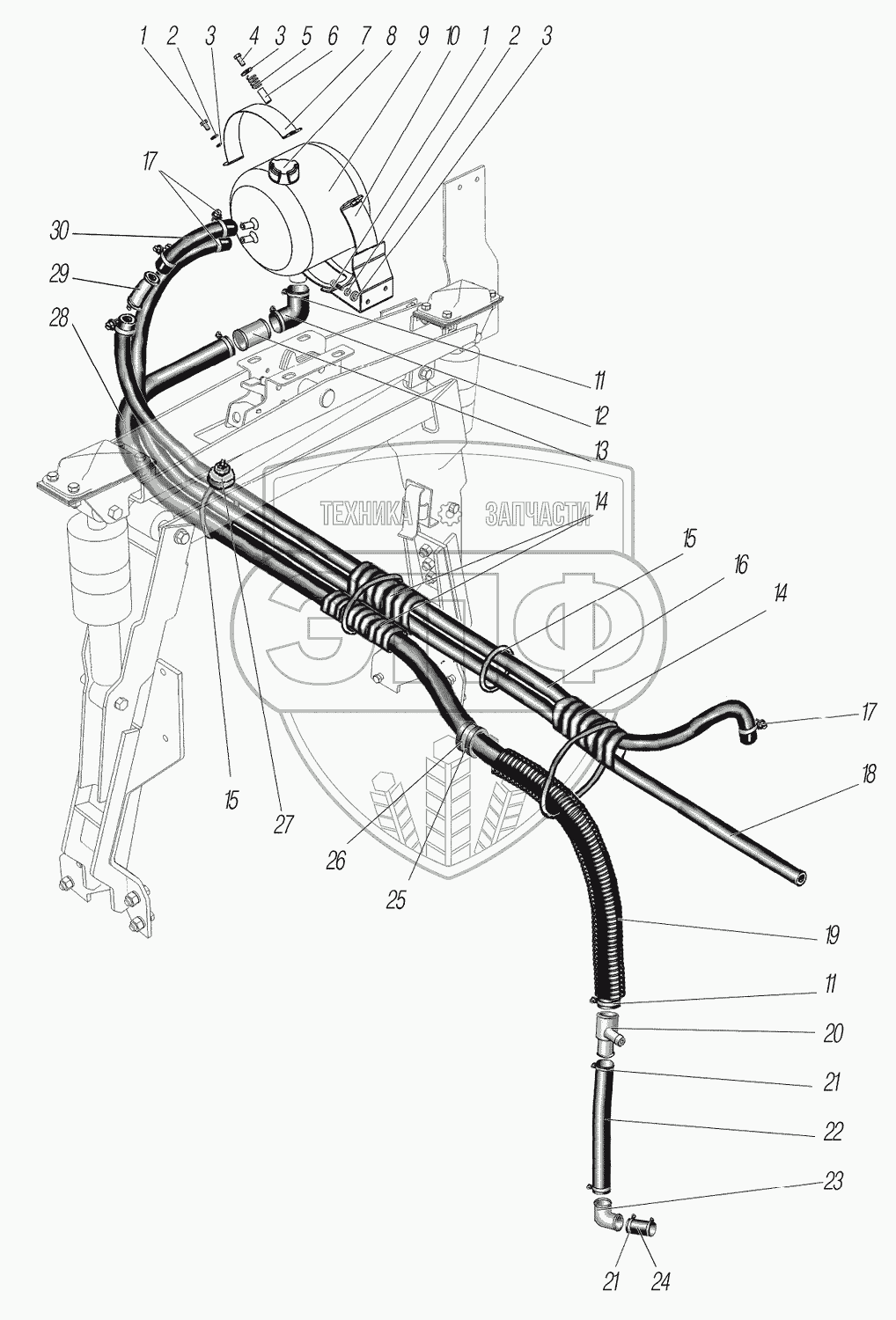 Каталог запасных частей к технике: УралАЗ УРАЛ-44202-3511-80М. Установка расширительного бачка