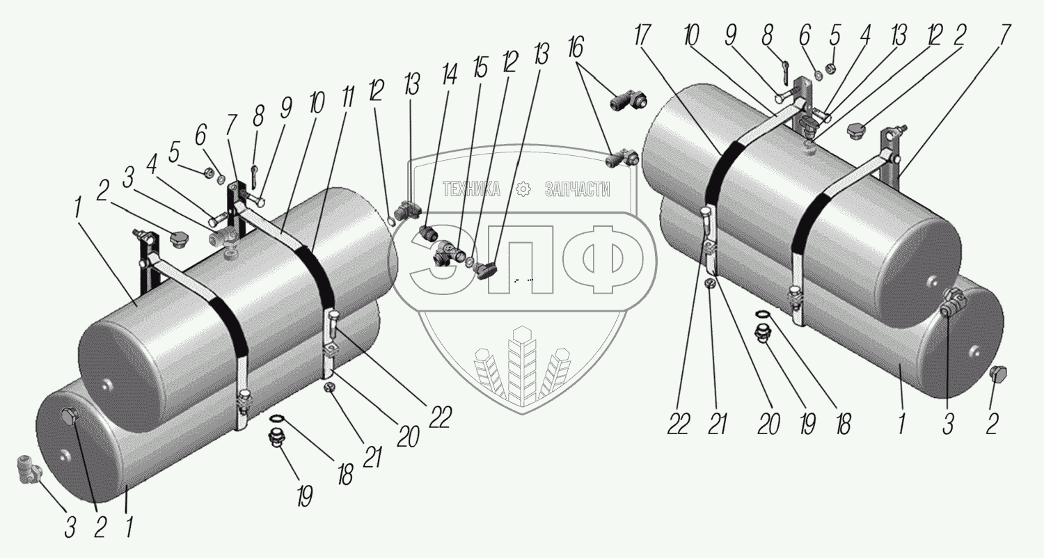 Каталог запасных частей к технике: УралАЗ УРАЛ-44202-3511-80М. Установка воздушных баллонов