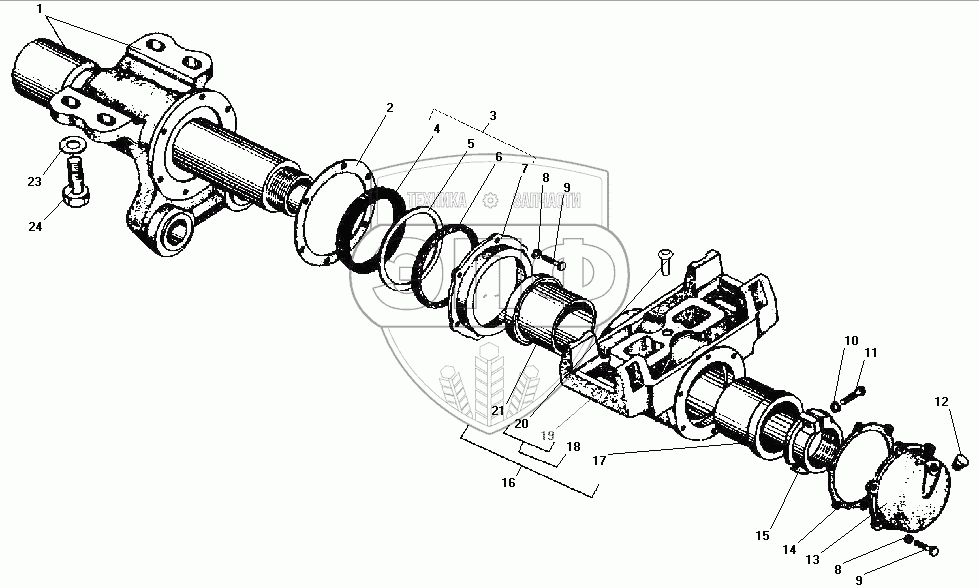 Каталог запасных частей к технике: УралАЗ УРАЛ-532301. Ось задней балансирной подвески