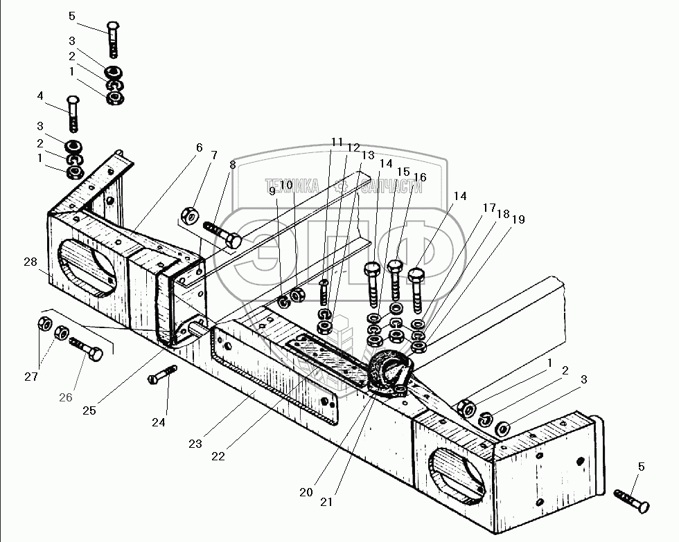 Каталог запасных частей к технике: УралАЗ УРАЛ-532301. Передний буфер и буксирные крюки