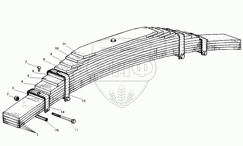 Каталог запасных частей к технике: УралАЗ УРАЛ-532301. Рессора передняя