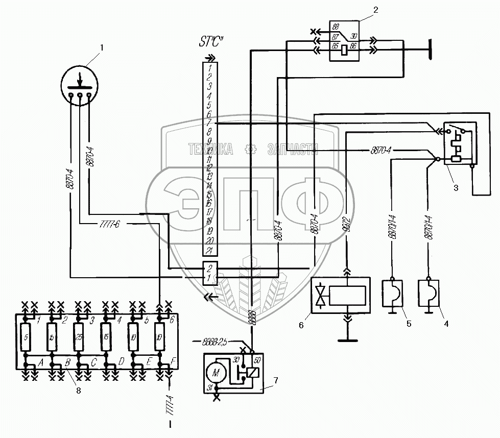 Каталог запасных частей к технике: УралАЗ УРАЛ-532301. Схема подключения электрофакельного устройства