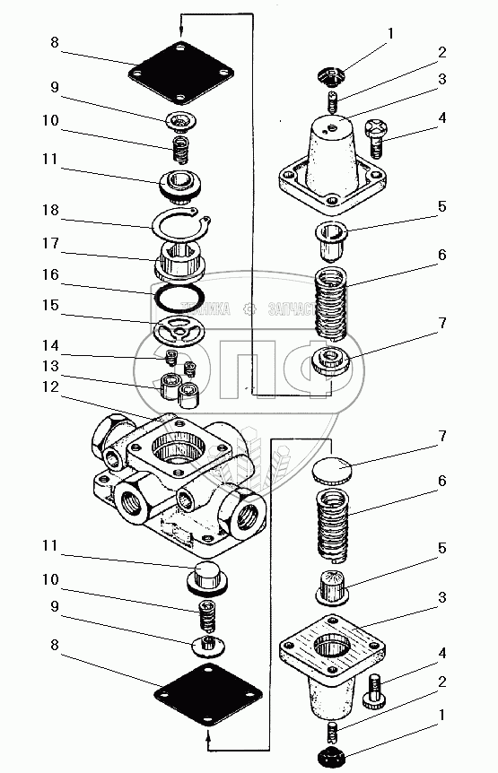 Каталог запасных частей к технике: УралАЗ УРАЛ-532301. Тройной защитный клапан
