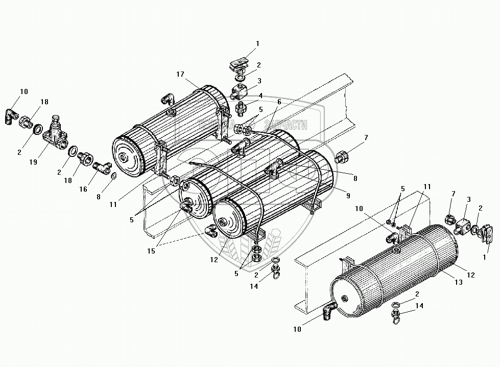 Каталог запасных частей к технике: УралАЗ УРАЛ-532301. Установка воздушных баллонов