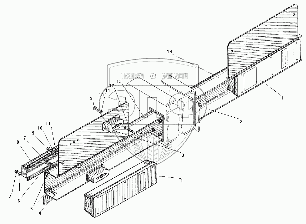 Каталог запасных частей к технике: УралАЗ УРАЛ-532301. Установка задних осветительных приборов