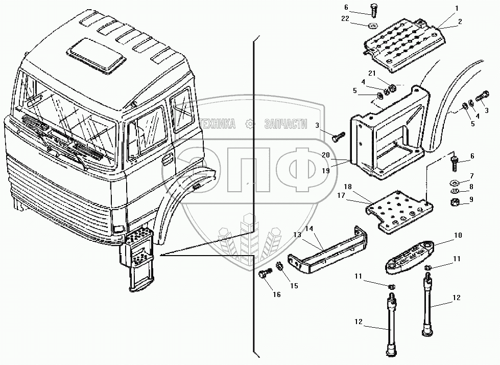 Каталог запасных частей к технике: УралАЗ УРАЛ-532301. Установки подножек