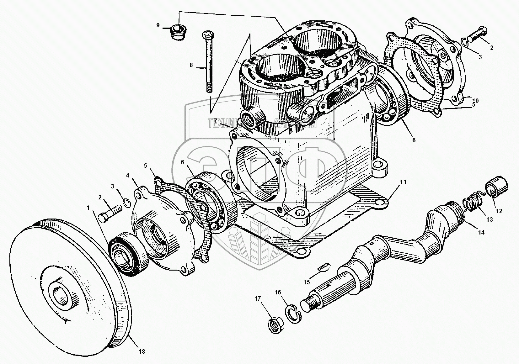 Каталог запасных частей к технике: УралАЗ УРАЛ-55571-30. Блок-картер компрессора