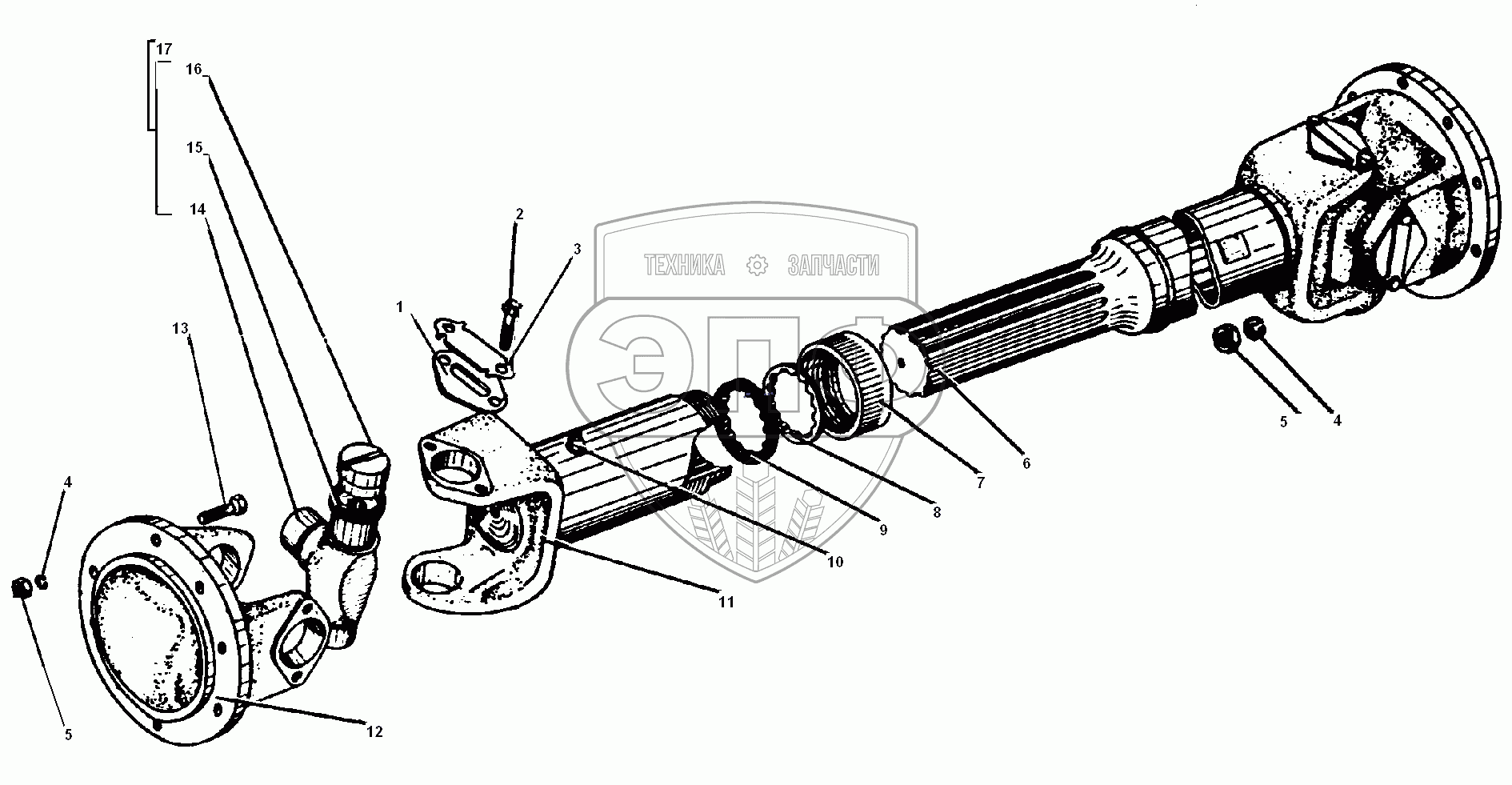 Каталог запасных частей к технике: УралАЗ УРАЛ-55571-30. Карданный вал среднего моста