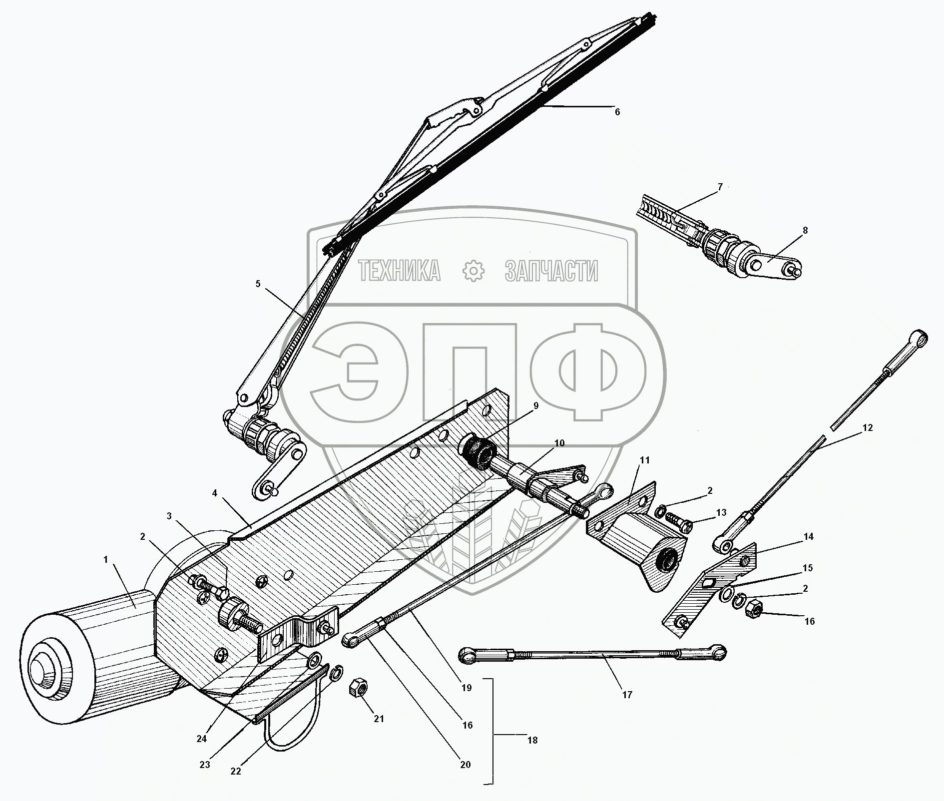Каталог запасных частей к технике: УралАЗ УРАЛ-55571-30. Стеклоочиститель и его привод