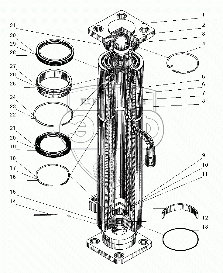 Каталог запасных частей к технике: УралАЗ УРАЛ-55571-40. Гидроцилиндр подъема платформы