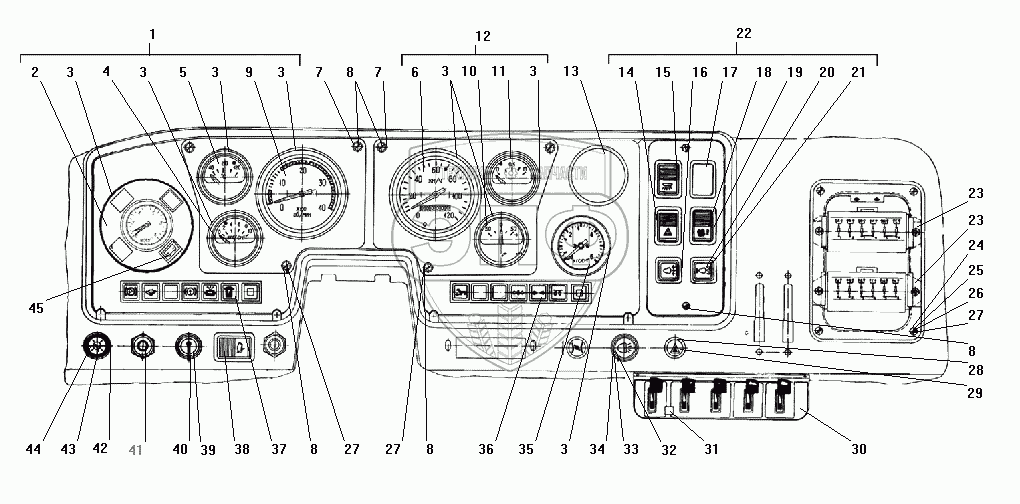 Каталог запасных частей к технике: УралАЗ УРАЛ-55571-40. Панель приборов