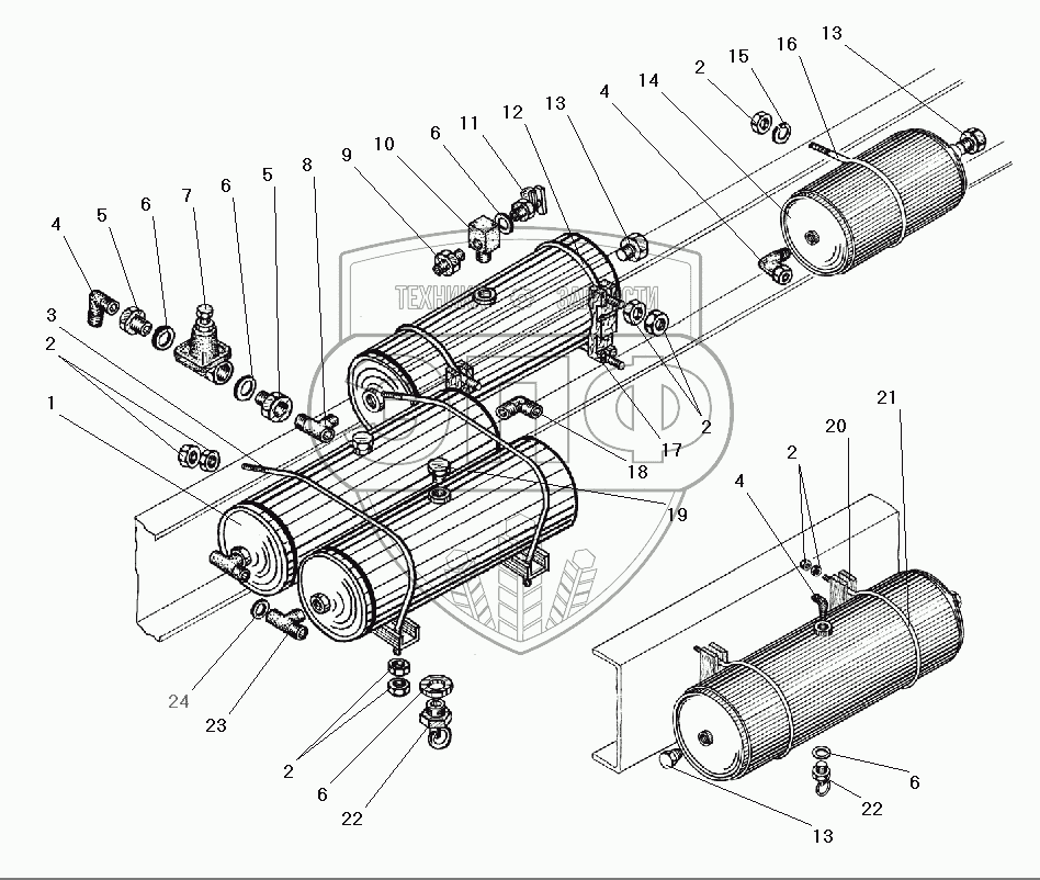Каталог запасных частей к технике: УралАЗ УРАЛ-55571-40. Установка воздушных баллонов