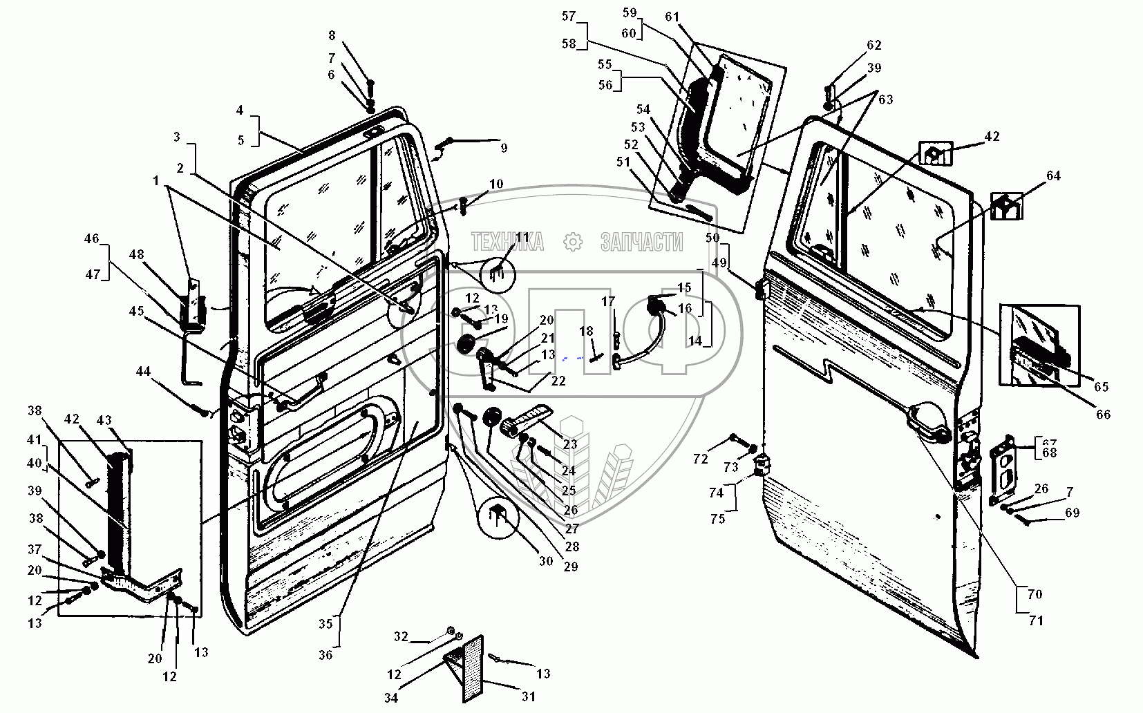 Каталог запасных частей к технике: УралАЗ УРАЛ-5557-31. Ручки двери