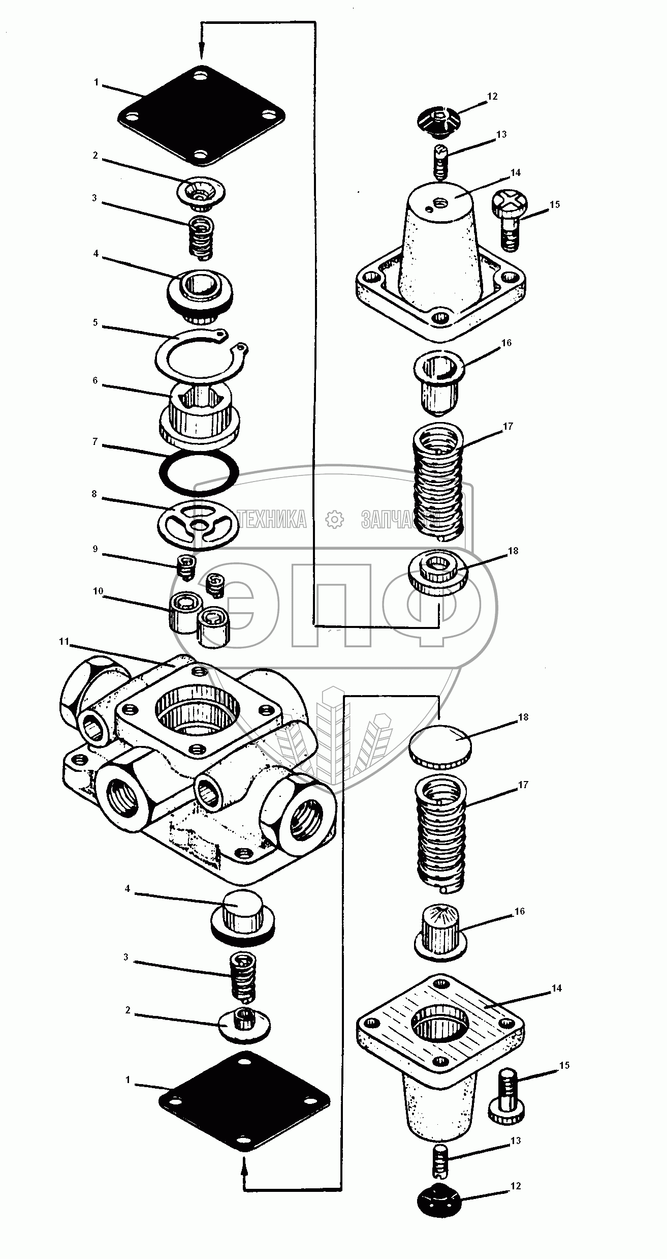 Каталог запасных частей к технике: УралАЗ УРАЛ-5557-31. Тройной защитный клапан