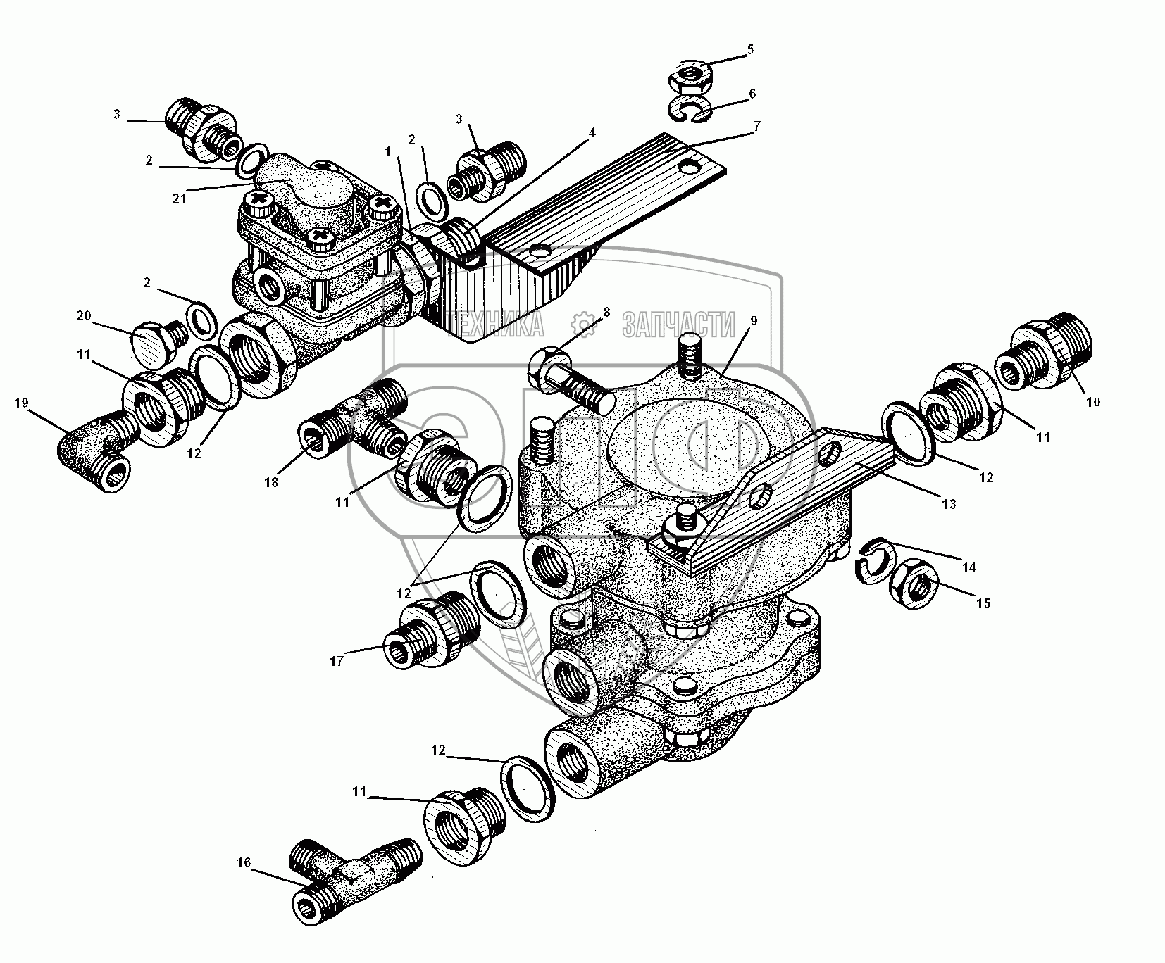 Каталог запасных частей к технике: УралАЗ УРАЛ-5557-31. Тройной защитный клапан