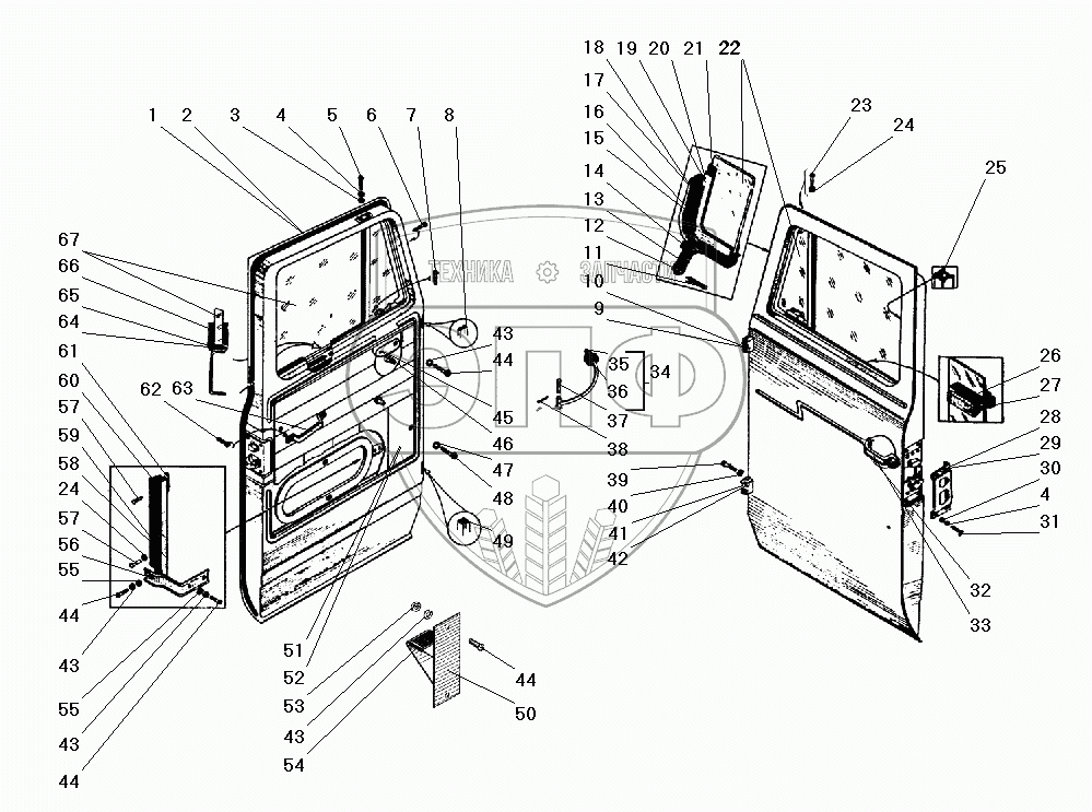 Каталог запасных частей к технике: УралАЗ УРАЛ-5557-40. Двери кабины