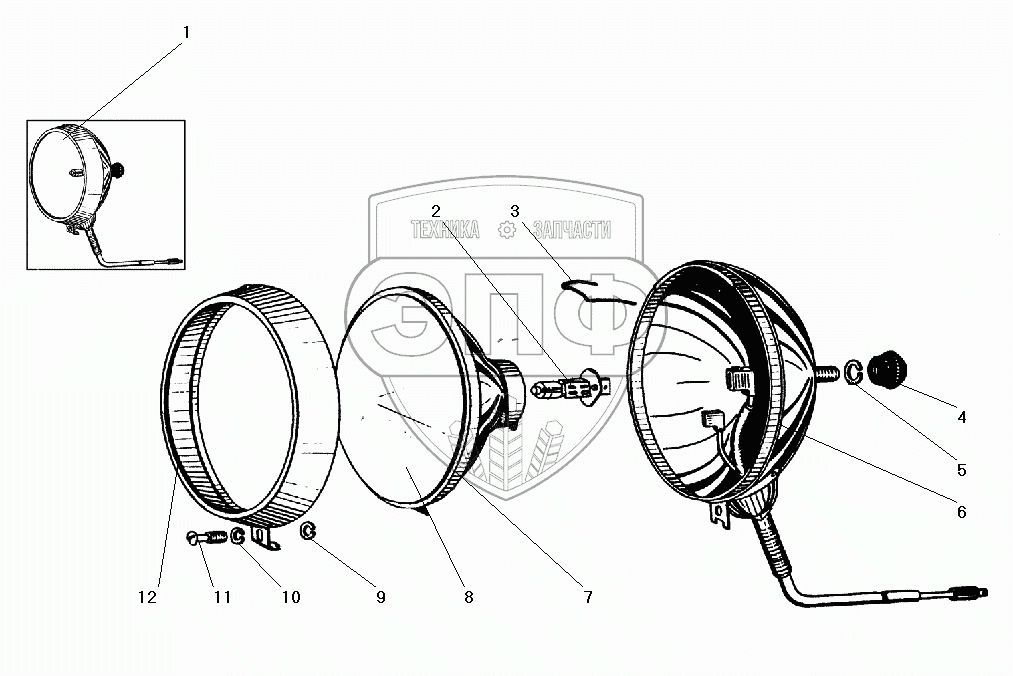 Каталог запасных частей к технике: УралАЗ УРАЛ-5557-40. Фара-прожектор